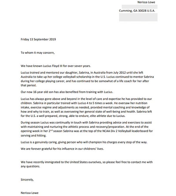 We have known Lucius for over seven years. Lucius trained and mentored our daughter, Sabrina, in Australia from July 2012 until she left Australia to take up her college volleyball scholarship in the U.S ... Lucius has always gone above and beyond in the level of care and expertise he has provided to our children [more]
