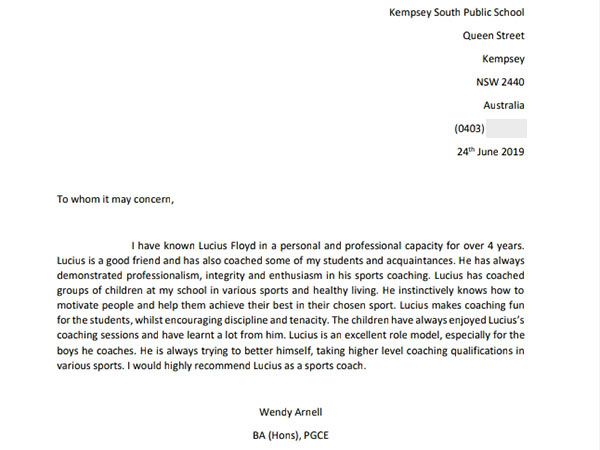I have known Lucius in a personal and professional capacity for over 4 years ... he has always demonstrated professionalism, integrity and enthusiasm in his sports coaching ... Lucius makes coaching fun for the students, whilst encouraging discipline and tenacity [more]
